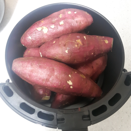 그런데 집에 에어프라이어가 있다면 고구마만 깨끗하게 씻어서 먹기 좋은 크기로 잘라서 넣어도 되고 에어프라이어가 크다면 통으로 고구마를 넣어도 된다.