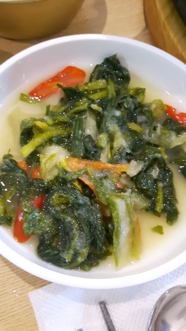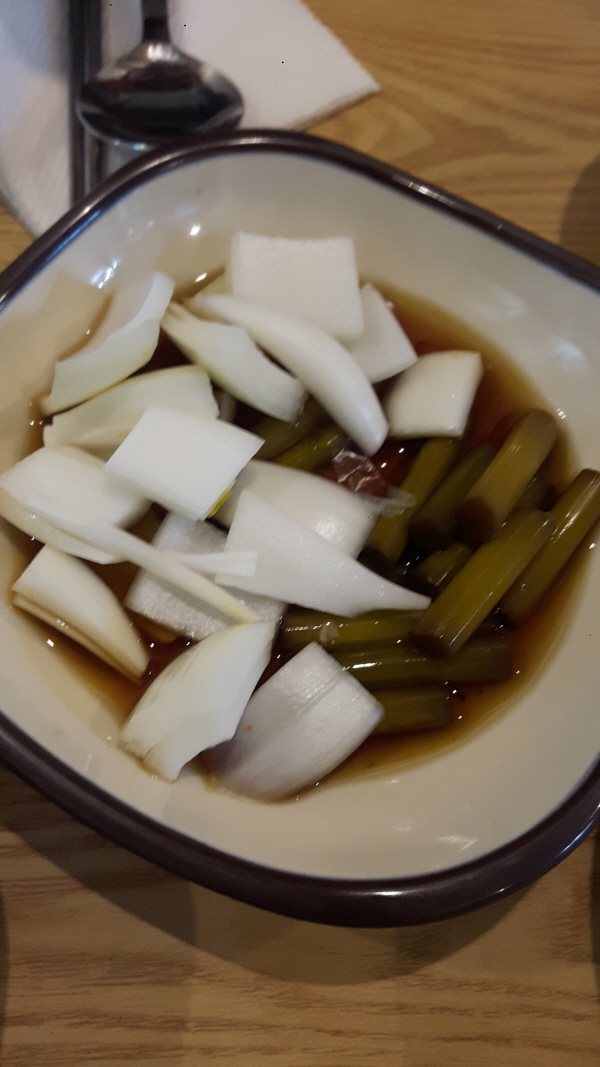 역촌동 전집인 월매전지짐이는 기본으로 양파절임과 열무김치가 기본으로 제공된다.
