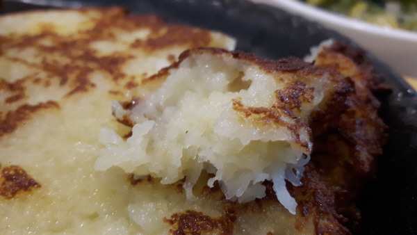 겉이 약간은 바싹하게 구워져야 씹어먹을 때의 식감도 좋은 것 같아서 보통 감자전은 바싹 익혀달라고 이야기를 한다.