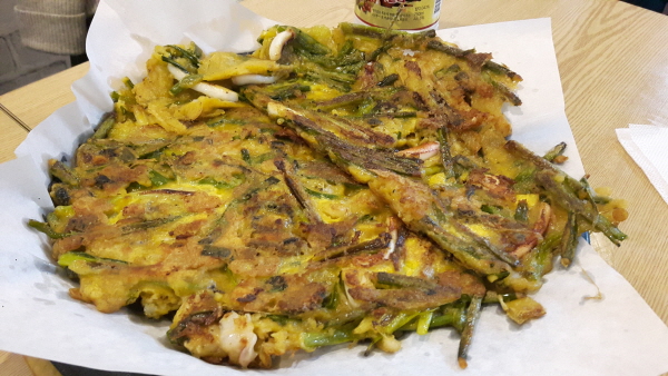 파전 역시 바싹 구워져서 나온 게 정말 먹음직스러운 것 같다.