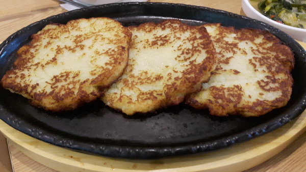 감자전은 생감자를 갈아서 쫀득쫀득하게 구워서 나오는 게 언제 먹어도 맛이 있다.