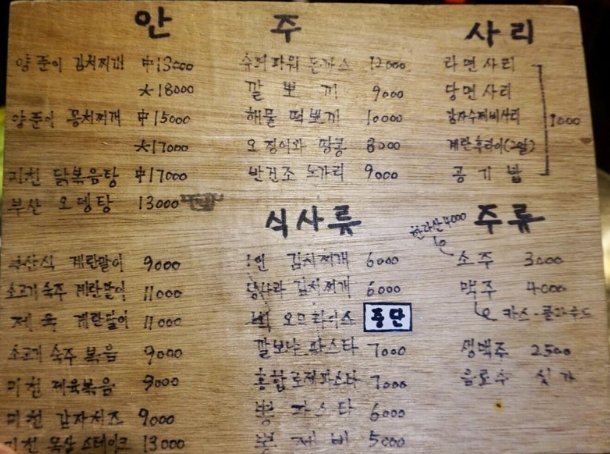 맛있는 음식을 먹으러 왔으니 맛난 안주를 시켜야 하는데 처음 와본 집이라 어떤 음식이 맛있는 줄 모르겠다. 주인장한테 물어보면 당연히 다 맛있다고 할 텐데 한번 물어볼까?