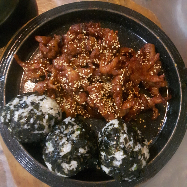 기본으로 무뼈닭발과 주먹밥이 함께 나온다. 여기에 계란찜도 나오는데 계란찜과 함께 먹으면 정말 맛이 있다는 것을 느낄 수가 있다.