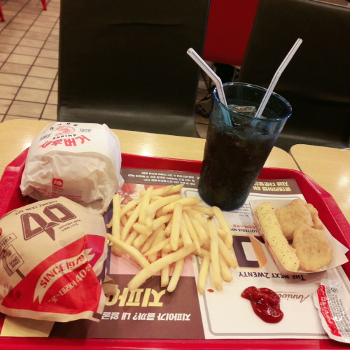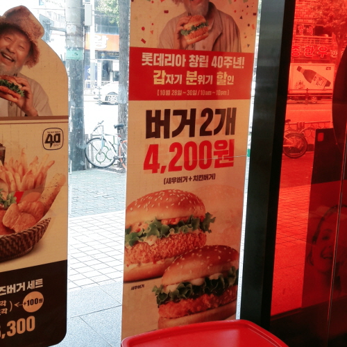 병원에서 진료받고 맛있는 냄새가 나는 곳이 있어 둘러보니 롯데리아에서 나는 냄새였다.