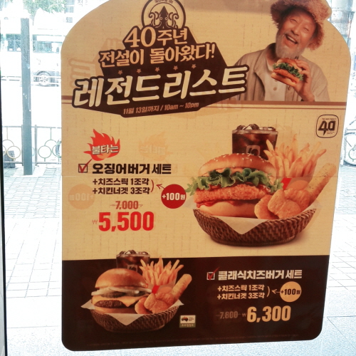 롯데리아를 들어가는 길에 입구에 있는 오징어버거 이벤트를 보았다.