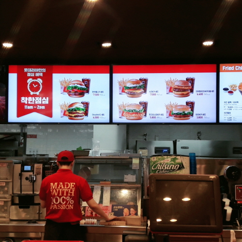 이른 점심시간이어서 아직까지는 롯데리아에 사람이 없이 한산했다.