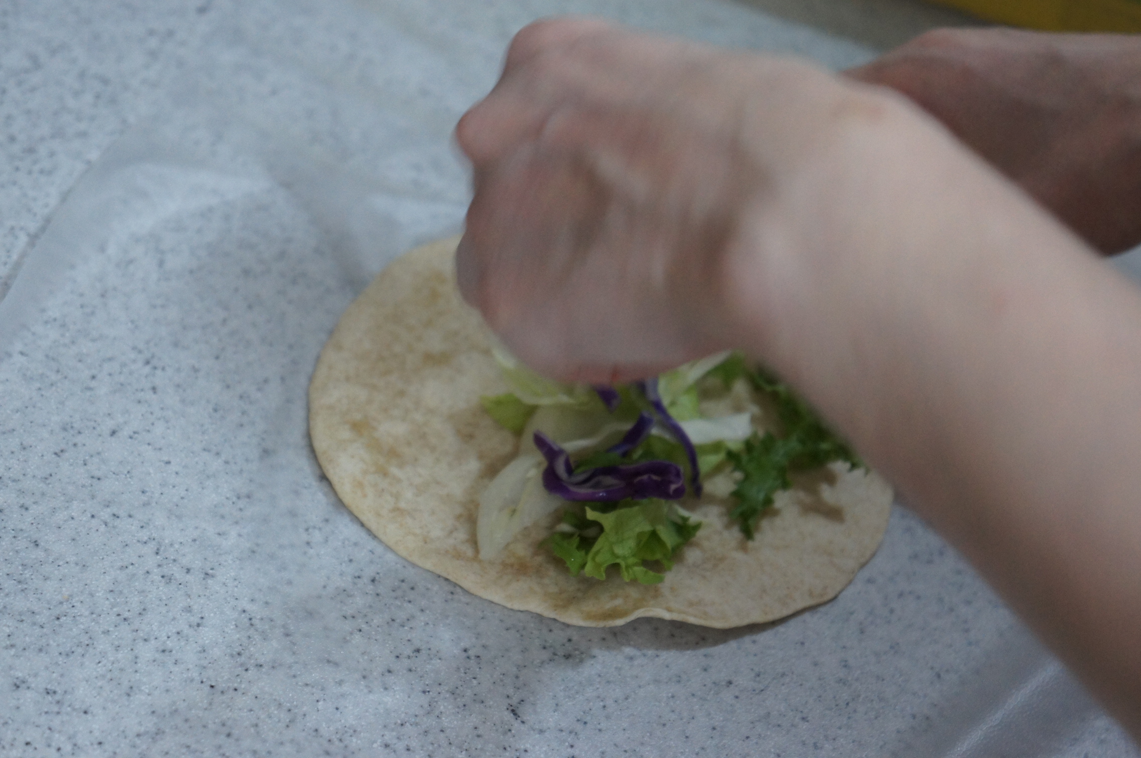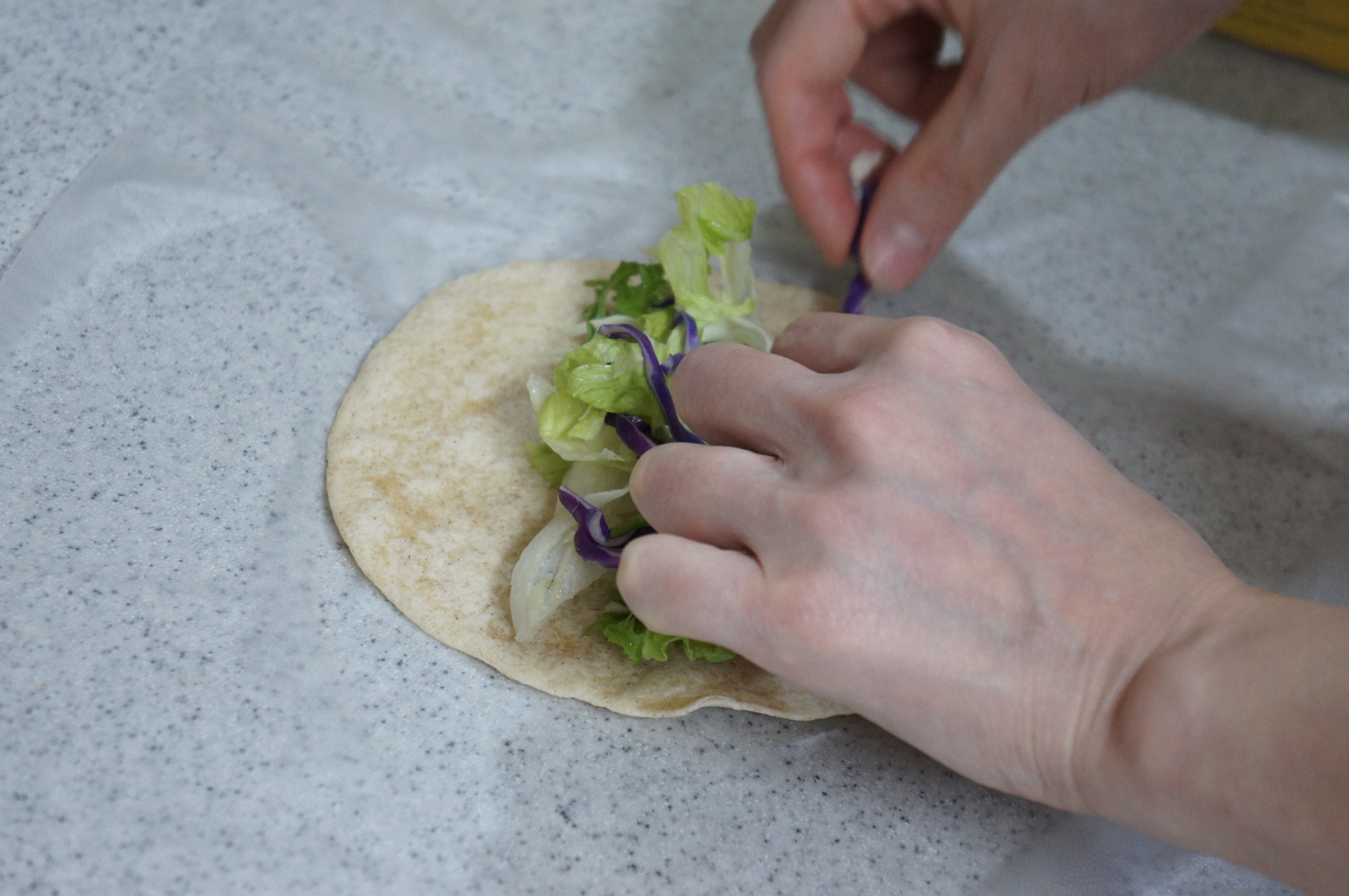 그위에 잘게 자른 적양배추를 올려서 넣었다.