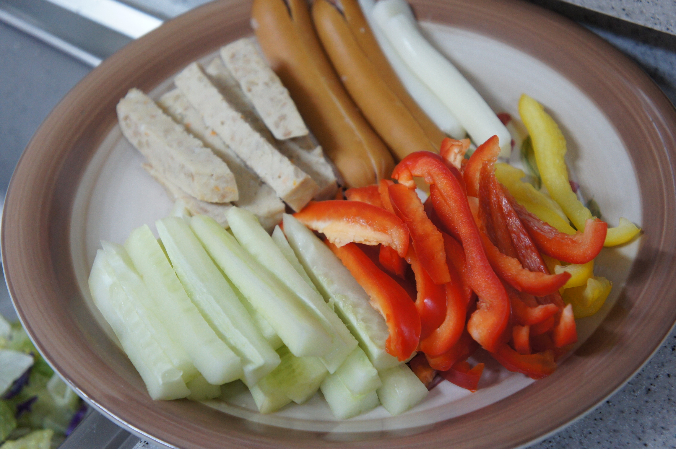 재료가 많이 남아서 어떻게 할까 고민을 하다 집에 있는 소스를 이용해서 샐러드를 만들어서 먹기로 했다.