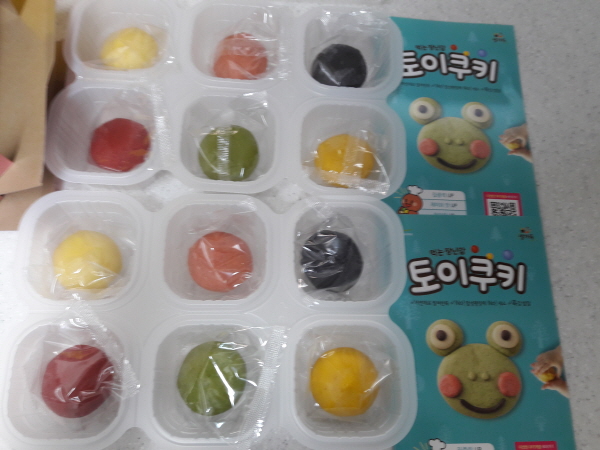 포장을 뜯어보면 여러 가지 색깔을 쿠키 반죽과 포장지까지도 동봉되어 있는 것을 확인할 수 있습니다.
