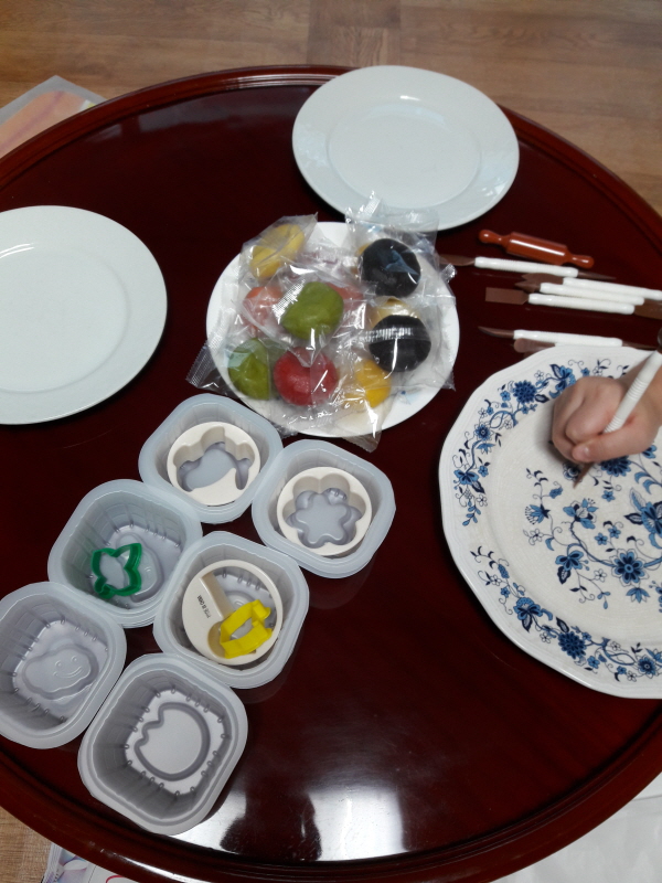 여러 가지의 틀과 쿠키 반죽을 준비되었으니 쿠키를 만들기 전 손을 깨끗하게 씻고 오는 게 가장 중요한 것 같습니다.