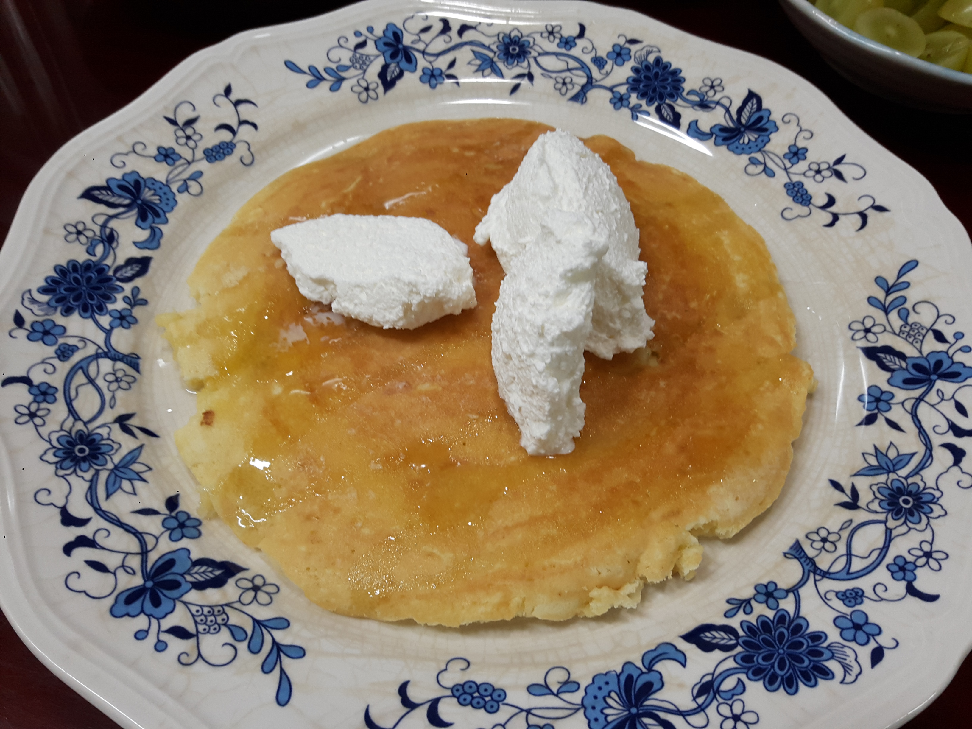 팬케익을 굽고 그위에 올리고당으로 소스를 입힌다음 생크림까지 얹어서 먹으니 정말 사먹는것 보다도 더 맛있었던것 같다.