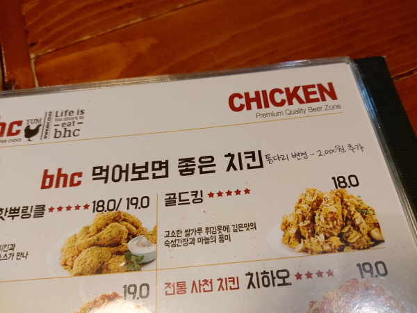 가족들과 함께 집근처에 있는 bhc 치킨집으로 오랜만에 치맥을 먹으러 나갔습니다. 6시 30분이라는 다소 이른 시간이라 그런지 아직 손님은 한 팀도 없더군요.
