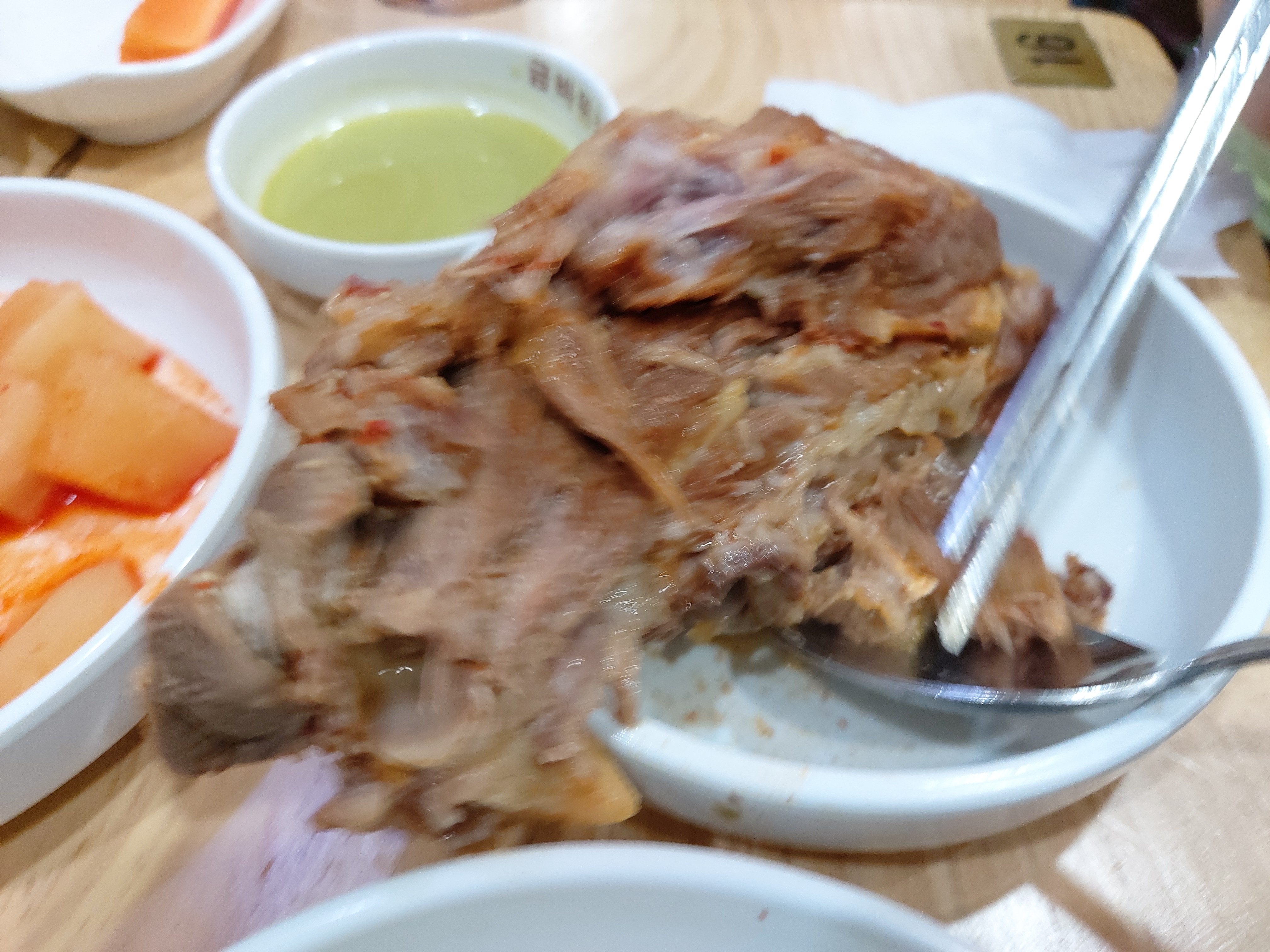 그렇게 감자탕이 서서히 다 익어가고 드디어 큰 뼈다귀를 앞접시에 담아서 고기를 조금씩 발라먹어 보았다. 역시 다른 감자탕집 과는 다르게 고기 맛이 훨씬 좋은 것 같다.